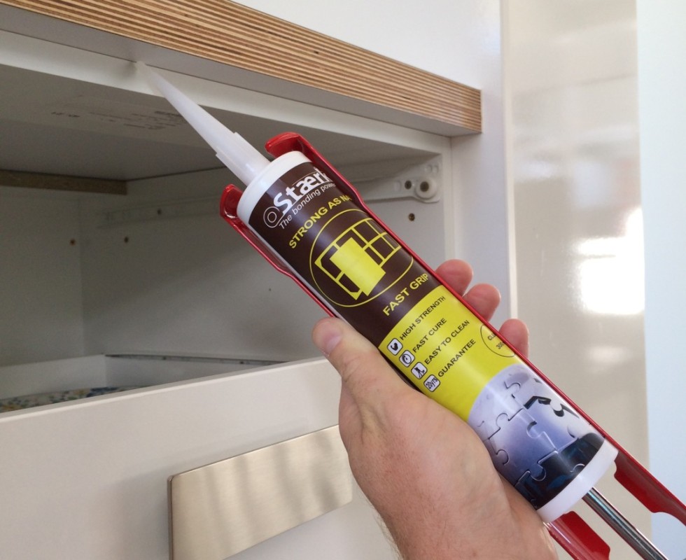 - Bonding cabinetry or cupboards to walls or floors